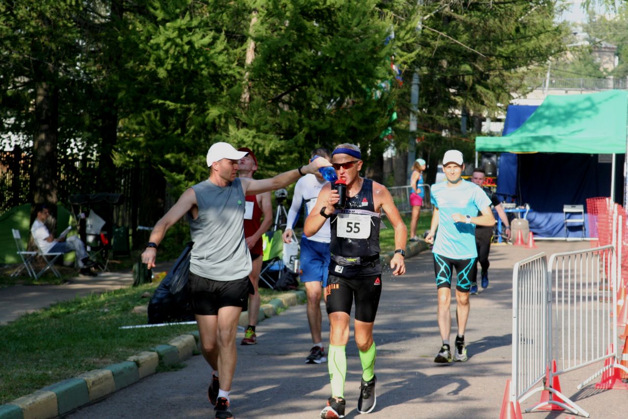 Чем прекрасен суточный бег? С одной стороны, звучит очень солидно, даже пугающе для непосвящённых. С другой стороны – нет DNF, невозможно сойти: вышел на старт, пробежал хотя бы один километр – всё, ты уже участник и финишёр суточного забега. Можно побегать, сходить на массаж, поесть, полежать, поспать, походить, пообщаться с друзьями. Нельзя съездить домой отдохнуть и снова вернуться на трассу, но можно пару часов побегать, сдать чип и уехать – в протоколе всё равно будешь, хотя и в конце списка. Я не утрирую, правила действительно очень лояльны. Если у вас фиксированное расстояние забега, всегда есть временной лимит на прохождение трассы, соответственно, риск DNF. Здесь лимит 24 часа, не более которых нужно присутствовать в районе трассы, но бегать при этом не обязательно. Особенно замечательны суточные забеги от Шри Чинмоя – практически all inclusive: очень много вкусной и разнообразной вегетарианской еды и напитков, в т.ч. арбузы, бананы, сухофрукты, шоколад, супы, каши, огурцы, макароны, чай масала, кока-кола, изотоники. 24 часа вас поддерживают заботливые волонтёры, есть медицинская поддержка (в этом году помимо дежурного врача была скорая помощь, т.к. было очень жарко днём, около 30 С). А на табло и в интернете он-лайн любой может следить за собственным результатом и за конкурентами. Мне нравится суточный бег! Если серьёзно, в моём возрасте (55 лет), да и для многих более молодых любителей это единственный шанс показать хоть какой-то результат и сделать беговые нормативы, хоть и устаревшие, но значимые в нашем сознании, например, КМС на сутках – это 220 км, т.е. нужно бежать в среднем с 6-м темпом 22 часа. Казалось бы, чего здесь сложного? На более коротких дистанциях беговые нормативы для КМС просто «конские», особенно для мужчин: на 100 км – 7:20, на марафоне – 2:28:30, на полумарафоне 1:09, а на дистанциях короче – ещё труднее. Начну с конца: на забеге Шри Чинмоя «Самопреодоление» 19 – 20 августа 2017 я занял 3-е место в абсолюте с результатом 211 км 214 м за сутки, улучшив личник почти на 9 км. Понятно, что с такими результатами не поспишь и не потусуешься – бежать нужно все сутки. Но, расскажу по порядку. Для удобства разобью отчёт на разделы. 1. Подготовка / подводка. Я лентяй и офисный «планктон», ещё и блогер, времени свободного мало, бегать по 50 км каждый день нет ни возможности, ни времени. Утром перед работой пробегаю 10 - 12 км, оторвав лишний час от сна, в выходные тренировка длиной до марафона или соревнования до 100 км, ещё и народ бесплатно тренируем в парке 2 раза в неделю. Зимних объёмов в этом году было меньше, чем год назад, когда я пробежал несколько стокилометровок (один раз даже с интервалом 2 недели). В этом году сотки исчезли из расписания забегов в Москве, «испарились» - Лена Скоблина перестала их проводить на «Битцевской прямой», видимо, не выгодно. Самому бежать сотку как-то сложно и муторно, нужна поддержка, опять же, соревнование стимулирует выдать результат по максимуму, сам я так не пробегу – силы воли не хватит. Этот же забег (Чемпионат московского региона «Самопреодоление») я бежал и в прошлом году, выиграв его с результатом 202 км (состав участников был более слабый, чем в этот раз). Да и расписание забегов перед этим стартом было почти то же, но всё же отличия были. За 4 недели до суточного забега в этом году был суздальский GRUT 100K – по факту 107 км по грязи, лесам, по