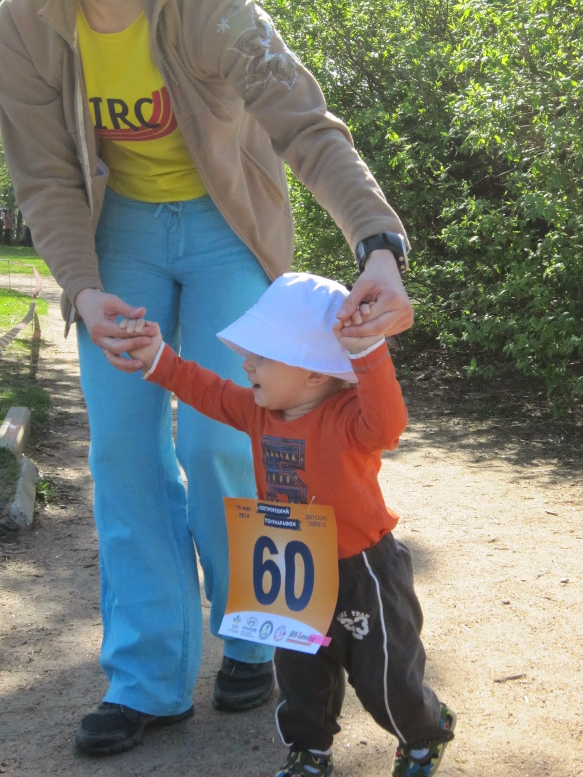 В этом году Сестрорецкий полумарафон неожиданно стал для меня большим событием, хотя изначально планировался как "рядовая" длинная беговая тренировка на фоне усталости после велогонки. Сценарий был аналогичный прошлогоднему, но командная шоссейная гонка на 130 километров (отчет напишу чуть позже, сознательно нарушив хронологическую последовательность) проходила не за неделю до полумарафона, а накануне. Таким образом за день до старта я проехал 130 километров в соревновательном режиме, а общий километраж получился 165 километров (около 5 часов в седле), спать лег тоже достаточно поздно. 18 мая, день старта. 7:00 Подъем. Завтрак, проверка и упаковка вещей. Велосипед приготовлен с вечера. 8:45 Выдвигаемся к месту старта, Оля с коляской едет на электричке (прибытие в Сестрорецк в 10:40), я же, как и в прошлом году, еду своим ходом по Приморскому шоссе, но не на шоссейнике, а на циклокроссе . В ногах ощущается легкая усталость, рассчитываю на среднюю скорость около 30 км/ч, на улице свежо, думаю одеть жилетку, чтобы не продувало, но быстро отгоняю эту мысль, понимая что я еще разогреюсь и тогда будет жарко. Погода ясная. Выезжаю на Пироговскую набережную и незаметно для себя разгоняюсь до 35 км/ч. Ноги работают достаточно легко, за городом на некоторых участках выдаю и 37 и 39 км/ч, перед развязкой в Горской вообще летел 46. То ли вчера не доработал, то ли нога пошла. 9:55 Я на месте регистрации. Звоню Оле удостовериться что все хорошо и иду регистрироваться. Очень много знакомых, успеваю только здороваться и кое с кем обменяться парой слов. Регистрация прошла быстро, регистрировался онлайн, страховку оформил заранее в одной из страховых компаний до конца года, так что свой номер получил всего минут за 5. Второй этап регистрации... За несколько дней до старта Оля обнаружила в положении пробега дистанцию для самых маленьких (200 метров) и предложила приобщить Ивана к спорту... Я отнесся несколько скептически к этому, так как мы не так давно начали ходить и дистанция казалась не по возрасту. Однако наблюдая ежедневный прогресс и забег вдоль озера на даче неделю назад я обрел уверенность в том, что нам это по силам, осталось убедить в этом судей. =) Еще одна сложность заключалась в том, что старт детского забега в 11:00, Оля не заметила этого в положении, и на то чтобы дойти от электрички до места старта и переодеться, у нас будет не больше 20 минут. Прикидываю как далеко станция, если встречу и побежим к старту трусцой - должны успеть. Заполнил карточку участника, подхожу к столу регистрации, после стандартного вопроса о наличии онлайн регистрации девушка смотрит на год рождения (2013) и после долгой паузы удивления говорит что с колясочной поддержкой дистанцию мы преодолеем. Я широко улыбаюсь, так как всего две недели назад я был уверен что своими ногами мы не дойдем, а сейчас Иван бегает так, что его и не догонишь! Очем и сообщаю, тут же меня поддерживает стоящий за мной Андрей Варганов, "пора" говорит. Получаю заветный красивый номер 60. 10:20 Поспешай не торопясь. Направившись в сторону станции решил позвонить Данику, зная что он живет рядом и вчера вечером, после командной гонки, он прислал СМС что тоже побежит этот полумарафон. После короткого разговора и описания сложившейся ситуации, он не отказал в помощи и в спешном порядке поехал встречать Олю, я остался ждать их у места старта